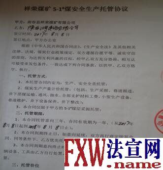 祥荣煤矿位于府谷县新民镇石家庄村,2017年8月8日,陕西某公司负责人赵明和该矿签定了《祥荣煤矿5-1#安全生产托管协议》,约定由赵明公司负责祥荣煤矿的5-1#煤层的生产、安全生产全责托管。2020年10月20日在新民镇政府调解下双方解除合同。