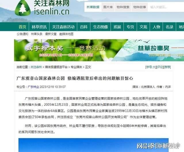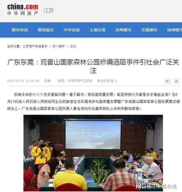 中华网报道的《广东东莞:观音山国家森林公园编修遇阻事件引社会广泛关注》
