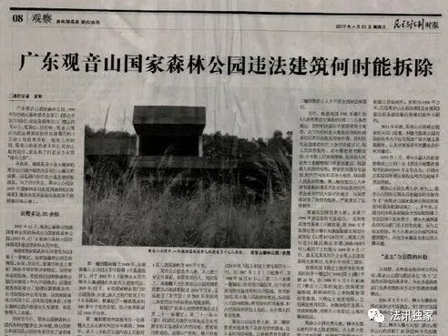 民主与法制时报报道的《广东观音山国家森林公园违法建筑何时能拆除》