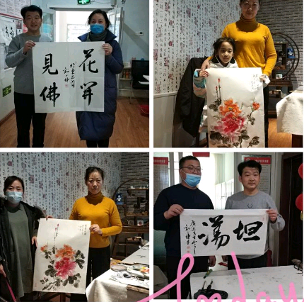 活动现场,书画名家刘延栋、耿福全、袁炳达泼墨挥毫,“你最牛”、“勤学多练从幼小起,长大方为社会英才”、“天道酬勤”、“琴韵书声”、“锲而不舍” … …国画家曾宪琴的写意牡丹,墨竹,葫芦… …一幅幅饱含深情的作品,为幼儿园送去宝贵的精神食粮,围观的老师和家长被艺术家们深厚的功底折服,纷纷掏出手机,记录精彩瞬间。